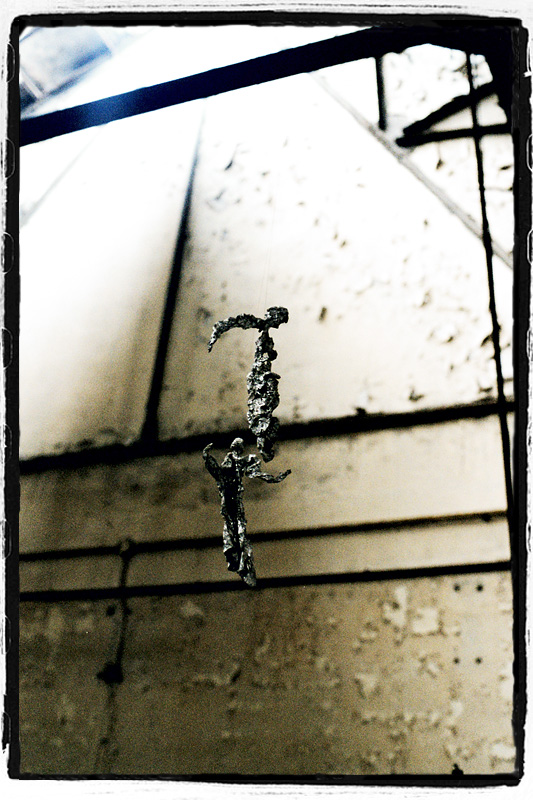 這個”藝術品”是我在廠內發現的,人像用錫箔紙製做、以細線掉在半空中而成…