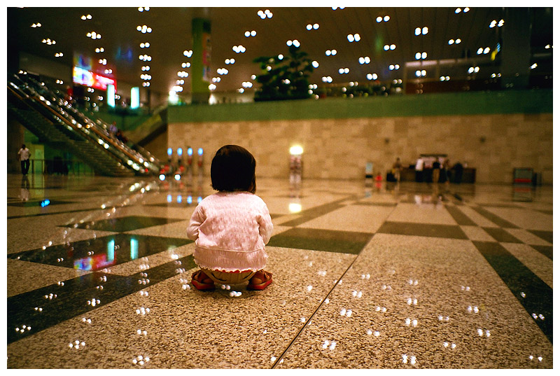 今年暑假一家四口到新加坡探親,剛到達新加坡機場,正忙著填寫過境表格的時候,眼見亞祺兒獨自一人蹲在過境的超廣豪華大廳中…一動也不動…