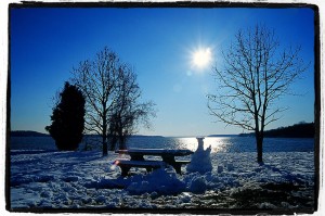 這裡是Mount Vernon,美國總統喬治華盛頓的家… 有一隻孤零零的雪人,默默的站在湖邊,等人家來陪他玩…