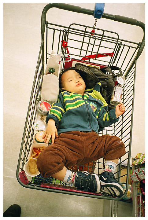 2007年一月,第一次到中和環球購物中心逛街…那時候環球購物中心還有一個很大的超市… 買單的時候,感覺後頭有台手推車推過來,回頭就看到這一幕景象…一個要被結帳的可愛小孩~ 腰掛右腎的我自然趕快拿起我的右腎,經過小孩父親的同意,就拍下這個有趣的畫面!!