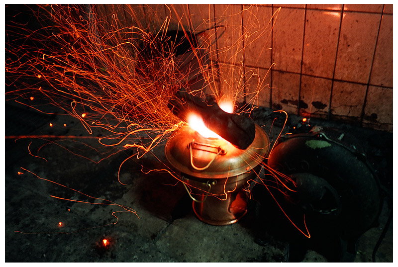 這天晚上走在錦州街上,路經一家火鍋店,忽然聽到店旁防火巷內有渦輪風聲… 轉頭看到這個神奇又有趣的畫面…自然要收到我的右腎裡珍藏下來!! 老闆說:「我們的火鍋是燒木炭的,而且要像這樣用渦輪吹風機整整搧15分鐘,才會達到最佳的火鍋溫度…小老弟,要吃的話要提前預約唷~~」
