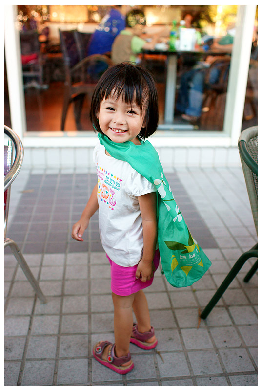 當娘的都有一種生活小智慧的技能!! 這天去喫茶趣吃午餐,結果亞祺兒的娘忘了帶亞祺兒的圍兜兜… 靈機一動,隨身攜帶的購物環保袋就變成了圍兜兜了~~